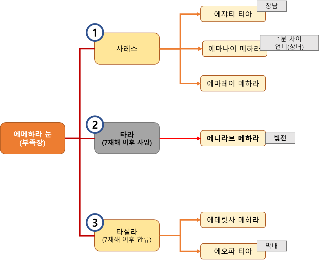 울다하 태생이었기 때문인지, 어린 시절 타타루와 민필리아와 안면이 있던 사이였다.